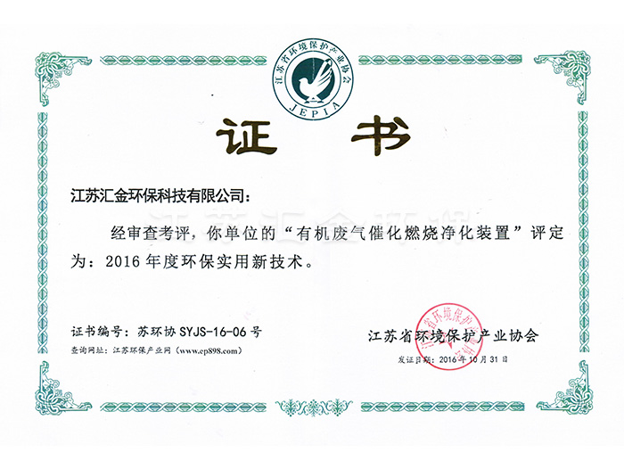 有機廢氣環(huán)保實用技術(shù)證書